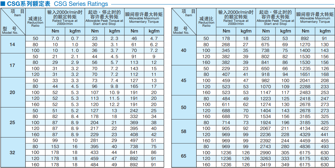 追求高負載容量,高可靠性,與CSF系列相比,轉矩容量提升了30%。 諧波發生器:橢圓形凸輪的外圈上嵌入薄型的滾珠軸承,整體呈一橢圓形狀的零件。軸承的內圈固定于凸輪之上,外圈則介由滾珠彈性變形。一般安裝在輸入軸上。 柔輪:具有薄壁杯型的金屬彈性體的零件。杯的開口部外圈刻有齒形。柔輪的底部稱為膜,通常安裝到輸出軸上。 剛輪:剛性環狀的零件。內側上刻有與柔輪同樣大小的齒形,且比柔輪多2個齒數。一般固定在外殼上。